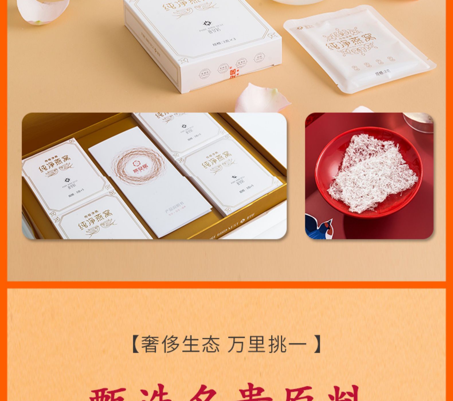寵愛自己,無懼時光。選取馬來西亞東部天然燕窩的中間燕網部分,精挑細選,營養保留完整。純凈可即燉,每片傳奇凈燕標準定量,無肉眼可見雜質。平均三到四盞毛燕精挑1片純凈燕窩。