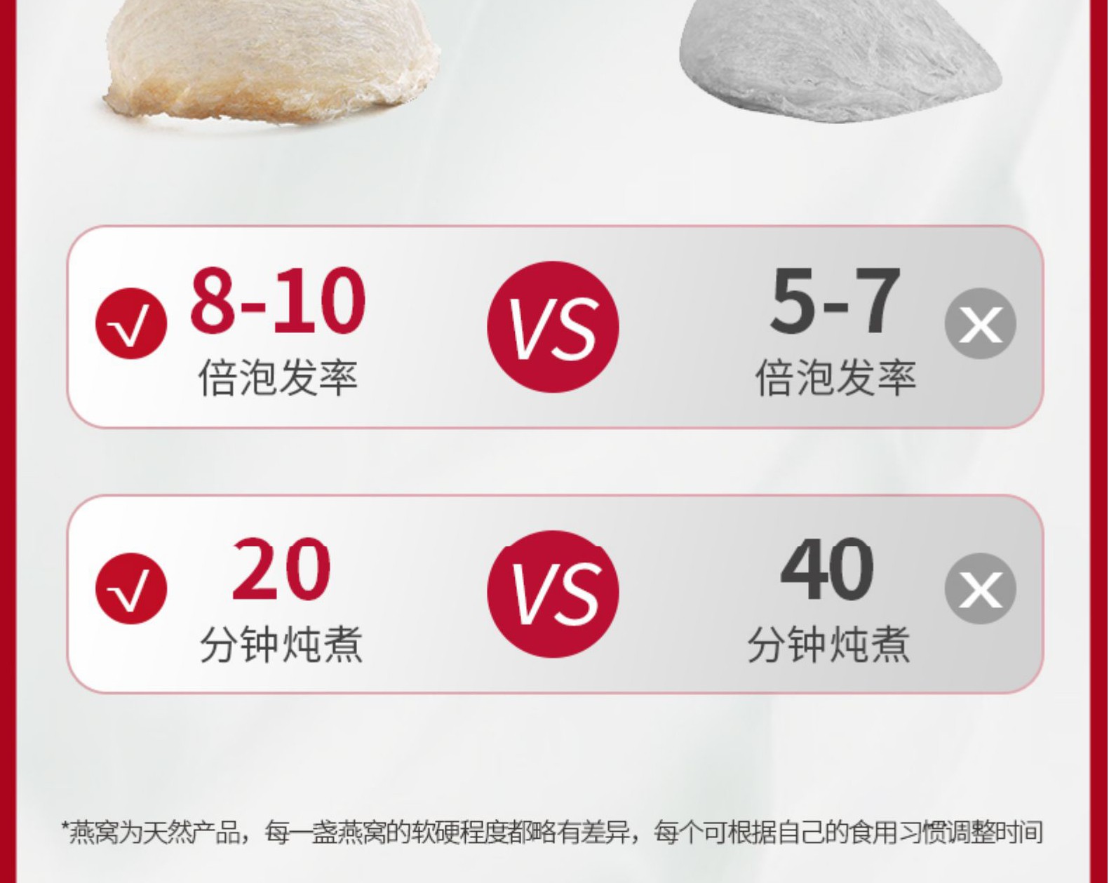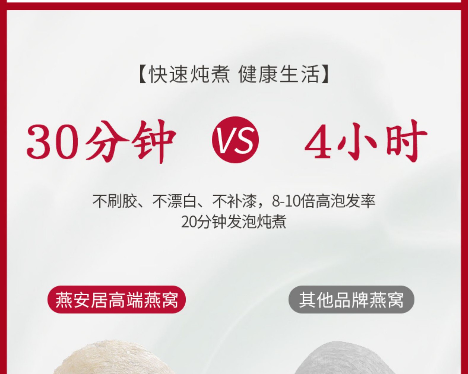 尊享五星禮遇,用臻品贈貴人!嚴(yán)選東南亞溯源燕盞,盞形自然,底座小,干凈度高,泡發(fā)率好;與海關(guān)技術(shù)中心合作,二次檢測,品質(zhì)更高,原生態(tài)零添加。